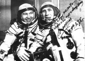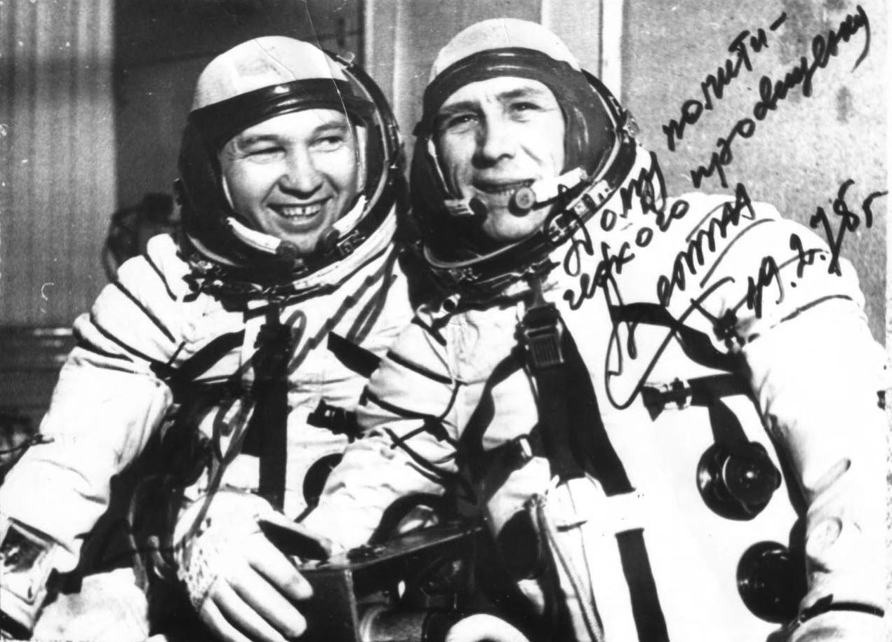 Экипаж космического корабля «Союз-15». Слева – командир корабля Сарафанов Геннадий Васильевич, лётчик-космонавт СССР, кандидат технических наук, полковник-инженер, Герой Советского Союза (1974). Справа – бортинженер Демин Лев Степанович, лётчик-космонавт СССР, кандидат технических наук, полковник-инженер, Герой Советского Союза (1974), Почетный гражданин г. Тамбова (1979). Август 1974 г. г. Тамбов. ГАСПИТО. Ф. П-9248. Оп. 3. Ед. хр. 1866