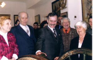 Открытие выставки Центра подготовки космонавтов им. Ю.А. Гагарина, посвященной 70-летию со дня рождения первого космонавта СССР Ю.А. Гагарина. Почетные гости слева направо: летчик-космонавт, Герой России Виноградов Павел Владимирович (третий), мать П.В. Виноградова Лидия Сафроновна Виноградова (пятая). 2004 г. г. Тамбов. ГАСПИТО. Ф. П-9248. Оп. 3. Ед. хр. 1595