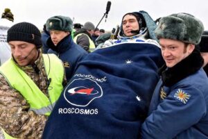 Герой Российской Федерации, летчик-космонавт, депутат Тамбовской областной Думы Волков Сергей Александрович – участник экспедиции на Международную космическую станцию приземлился на Землю 2 марта 2016 г. в Республике Казахстан (г. Жезказган). 2016 г. ГАСПИТО. Ф. П-9248. Оп. 6. Ед. хр. 11. Ед. уч. 4509