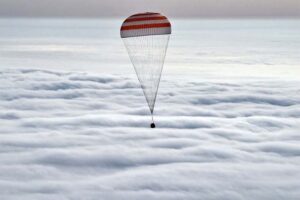 Спускаемая капсула космического корабля «Союз ТМА-18М» с российским летчиком-космонавтом М.Б. Корниенко, американским астронавтом Скоттом Келли и летчиком-космонавтом, депутатом Тамбовской областной Думы С.А. Волковым. 2016 г. г. Тамбов. ГАСПИТО. Ф. П-9248. Оп. 6. Ед. хр. 11. Ед. уч. 4508