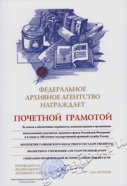 Награды за подготовку двухтомного сборника документов «Тамбовская область в годы Великой Отечественной войны 1941-1945 гг.» 24.06.2013