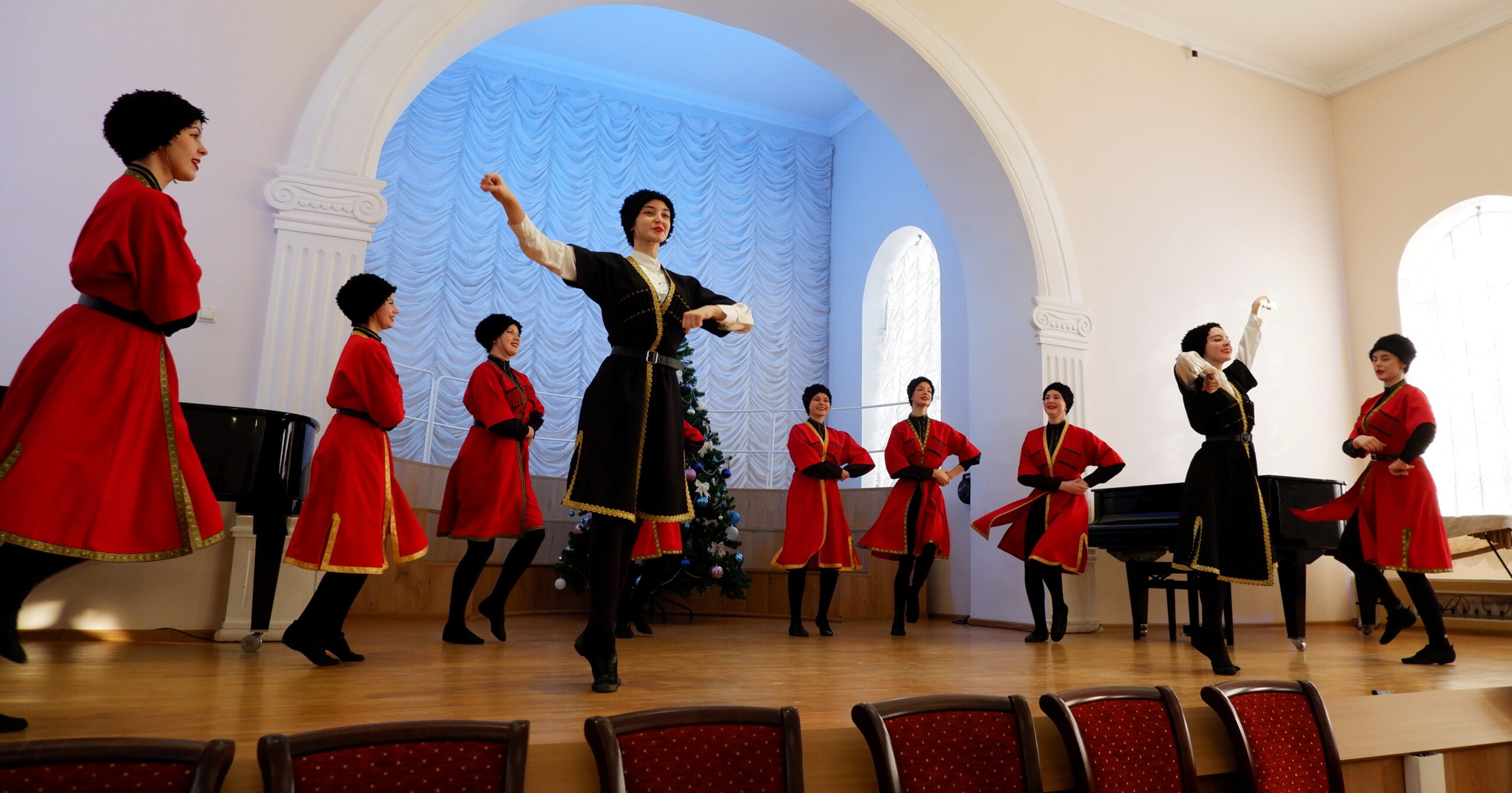 Лауреат международных конкурсов, хореографический ансамбль «Наследие» ТОГБ ПОУ «Тамбовский колледж искусств» (руководитель Н. Кирюшина) выступает с танцем «Черноморочка» на новогоднем концерте для представителей ветеранских организаций Тамбовской области в актовом зале ТОГБ ПОУ «Тамбовский колледж искусств». 15 января 2026 г. г. Тамбов, ул. Августа Бебеля, 21