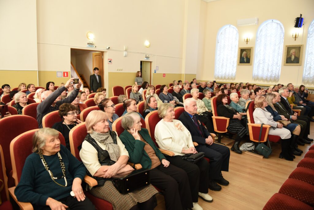 Новогодний концерт для представителей ветеранских организаций Тамбовской области в актовом зале ТОГБ ПОУ «Тамбовский колледж искусств». Общий вид зала. 15 января 2026 г. г. Тамбов, ул. Августа Бебеля, 21. Автор съемки – А.О. Корнеева