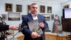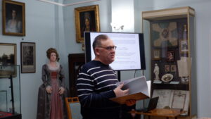 Презентации книги «Тамбовский областной краеведческий музей. История. Люди. Коллекции», посвященной 145-летию Тамбовского областного краеведческого музея. Выступает кандидат исторических наук, доцент ТГУ имени Г.Р. Державина, советник главы Тамбовской области, лауреат премии «Золотая маска» С.А. Чеботарев. 24 декабря 2025 г. г. Тамбов, ул. Державинская, 3