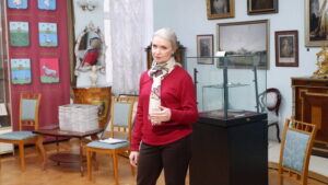 Презентация книги «Тамбовский областной краеведческий музей. История. Люди. Коллекции», посвященной 145-летию Тамбовского областного краеведческого музея. Выступает дизайнер ООО «Цифра» О.А. Бажанова. 24 декабря 2025 г. г. Тамбов, ул. Державинская, 3