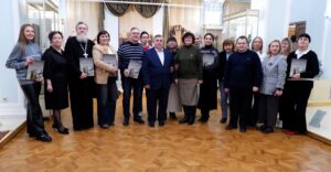Торжественное вручение книги «Тамбовский областной краеведческий музей. История. Люди. Коллекции», посвященной 145-летию Тамбовского областного краеведческого музея. Третья слева – зав. отделом использования документов и информатизации ГАСПИТО, Почетный архивист И.И. Муравьева. 24 декабря 2025 г. г. Тамбов, ул. Державинская, 3