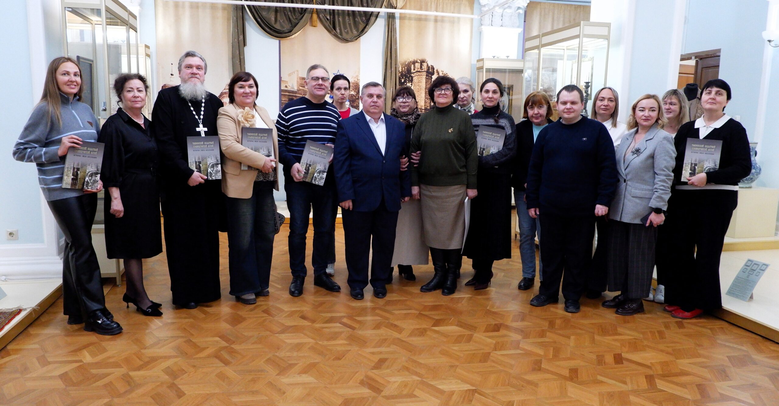 Авторский коллектив и почетные гости презентации книги «Тамбовский областной краеведческий музей. История. Люди. Коллекции», посвященной 145-летию Тамбовского областного краеведческого музея. 24 декабря 2025 г. г. Тамбов, ул. Державинская, 3