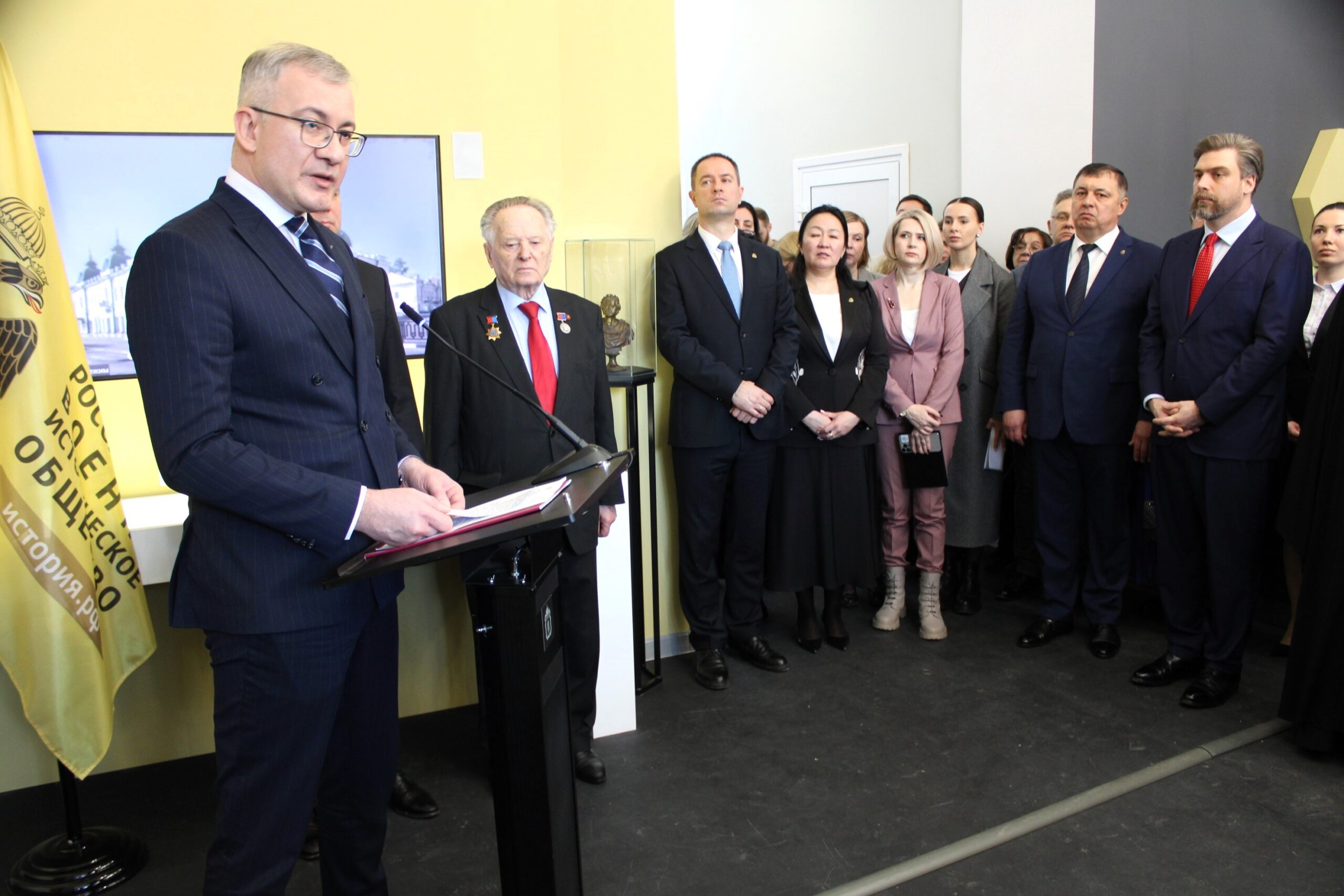 В торжественной церемонии приняли участие: начальник Управления Президента Российской Федерации по государственной политике в гуманитарной сфере В.В. Бочарников, советник Председателя Российского военно-исторического общества Р.И. Мединский, директор Департамента региональной политики Исполнительной дирекции Российского военно-исторического общества А.А. Шойгу, Глава Тамбовской области Е.А. Первышов, митрополит Тамбовский и Рассказовский Феодосий, главный федеральный инспектор по Тамбовской области аппарата полномочного представителя Президента Российской Федерации в Центральном федеральном округе В.Б. Пригорнев, сенатор Российской Федерации А.В. Кондратьев, заместитель главы Тамбовской области Н.Н. Федосеенков, глава администрации города Тамбова М.Ю. Косенков, советник главы Тамбовской области А.Ю. Смертин, советник главы Тамбовской области С.А. Чеботарев, советник главы Тамбовской области, председатель Регионального отделения Российского военно-исторического общества А.А. Воробьев, министр образования и науки Тамбовской области Т.П. Котельникова, председатель Тамбовской городской Думы К.А. Кутейников, заместитель министра культуры Тамбовской области — начальник управления профессионального образования и развития музейного, библиотечного и архивного дела министерства Е.В. Жмаева, руководитель Музейно-выставочного центра Тамбовской области И.А. Николаев, генеральный директор ООО «Артефакт» Л.В. Введенская, координатор проектов Департамента региональной политики Исполнительной дирекции Российского военно-исторического общества В.И. Петракова, исполнительный директор Музея военной истории Российского военно-исторического общества Е.В. Синицина, ведущий специалист отдела мероприятий Музея военной истории Российского военно-исторического общества Д.Е. Алексеев, депутаты Тамбовской областной Думы, представители сферы музейного дела региона.