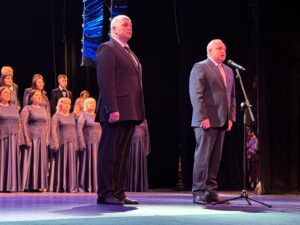 Гимн России на собрании исполнил камерный хор имени С.В. Рахманинова, художественным руководителем и главным дирижером которого является заслуженный деятель искусств Российской Федерации, Герой Труда Тамбовской области В.В. Козляков.