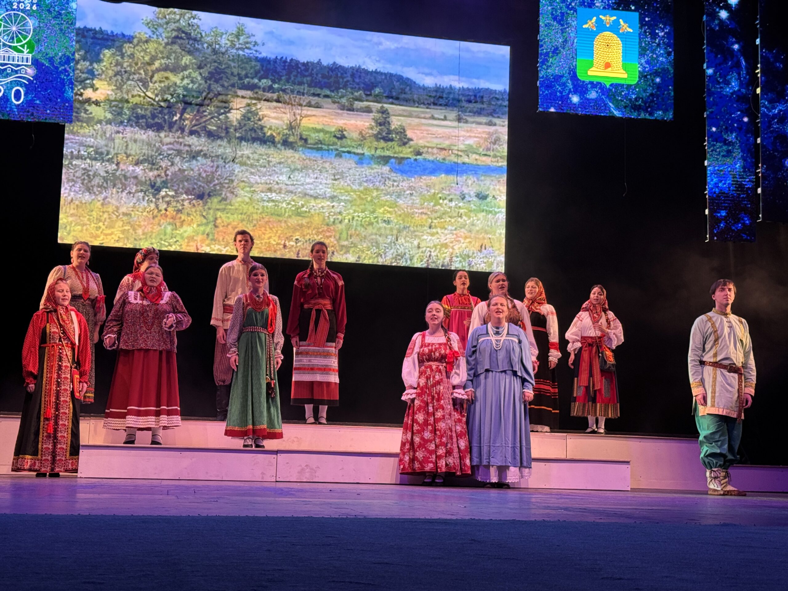 Фольклорный ансамбль «Губеренка» (руководитель М.В. Друцкая) выступает на торжественном собрании «Сквозь время», посвященном 390-летию со дня основания г. Тамбова, в большом зале Тамбовтеатра. 27 апреля 2026 г. г. Тамбов, ул. Интернациональная, 15