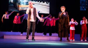 Бас-гитарист, аранжировщик, вокалист О. Завьялов (слева) и певица, педагог, заслуженная артистка РФ, лауреат премии Тамбовской обл. им. З.А. Космодемьянской А. Кругова (справа) выступают на торжественном собрании «Сквозь время», посвященном 390-летию со дня основания г. Тамбова, в большом зале Тамбовтеатра. 27 апреля 2026 г. г. Тамбов, ул. Интернациональная, 15