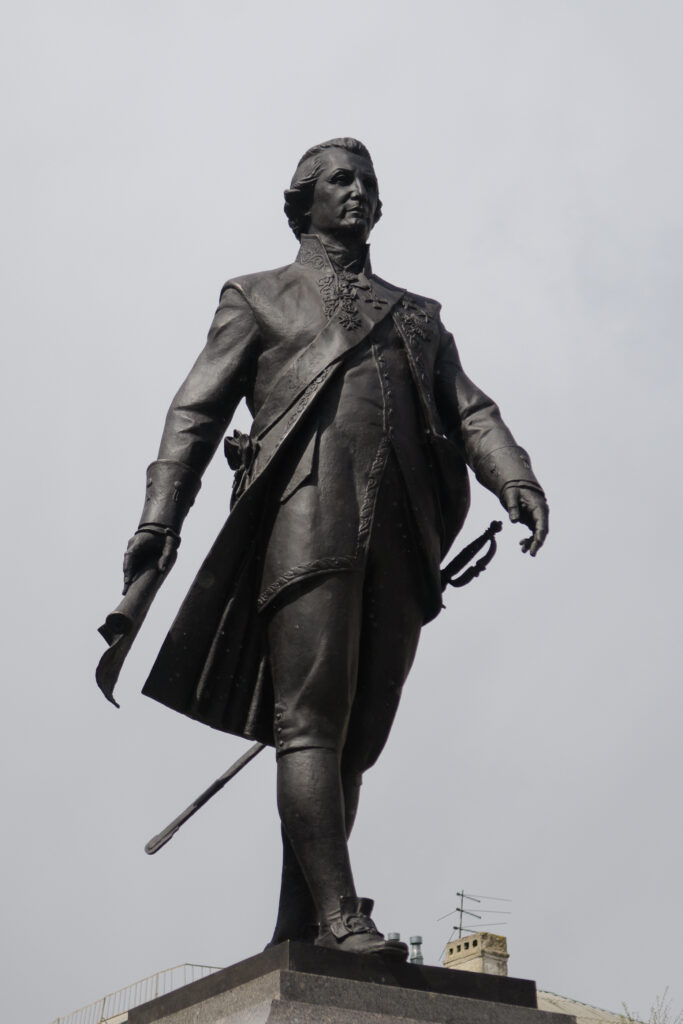 Памятник Гавриилу Романовичу Державину – государственному деятелю, поэту и драматургу, правителю Тамбовского наместничества в 1786-1788 гг., первому министру юстиции Российской империи. Авторы памятника: скульптор – А. Степаненко, архитектор – Я. Ломко. 27 апреля 2026 г. г. Тамбов. Автор съемки – А. Бучнев