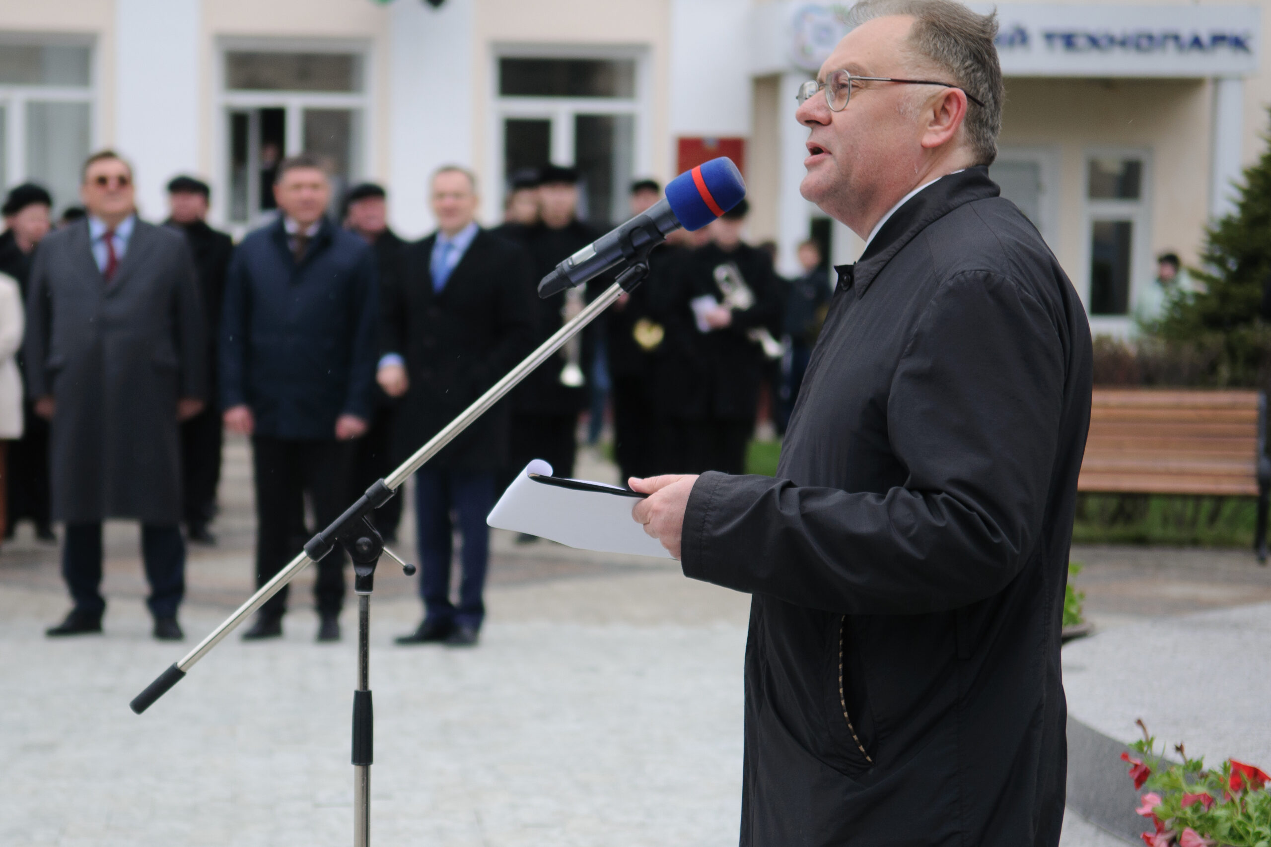 Участники торжественной церемонии открытия памятника Г.Р. Державину в одноименном сквере г. Тамбова. 27 апреля 2026 г. Автор съемки – Н.Ф. Комаров