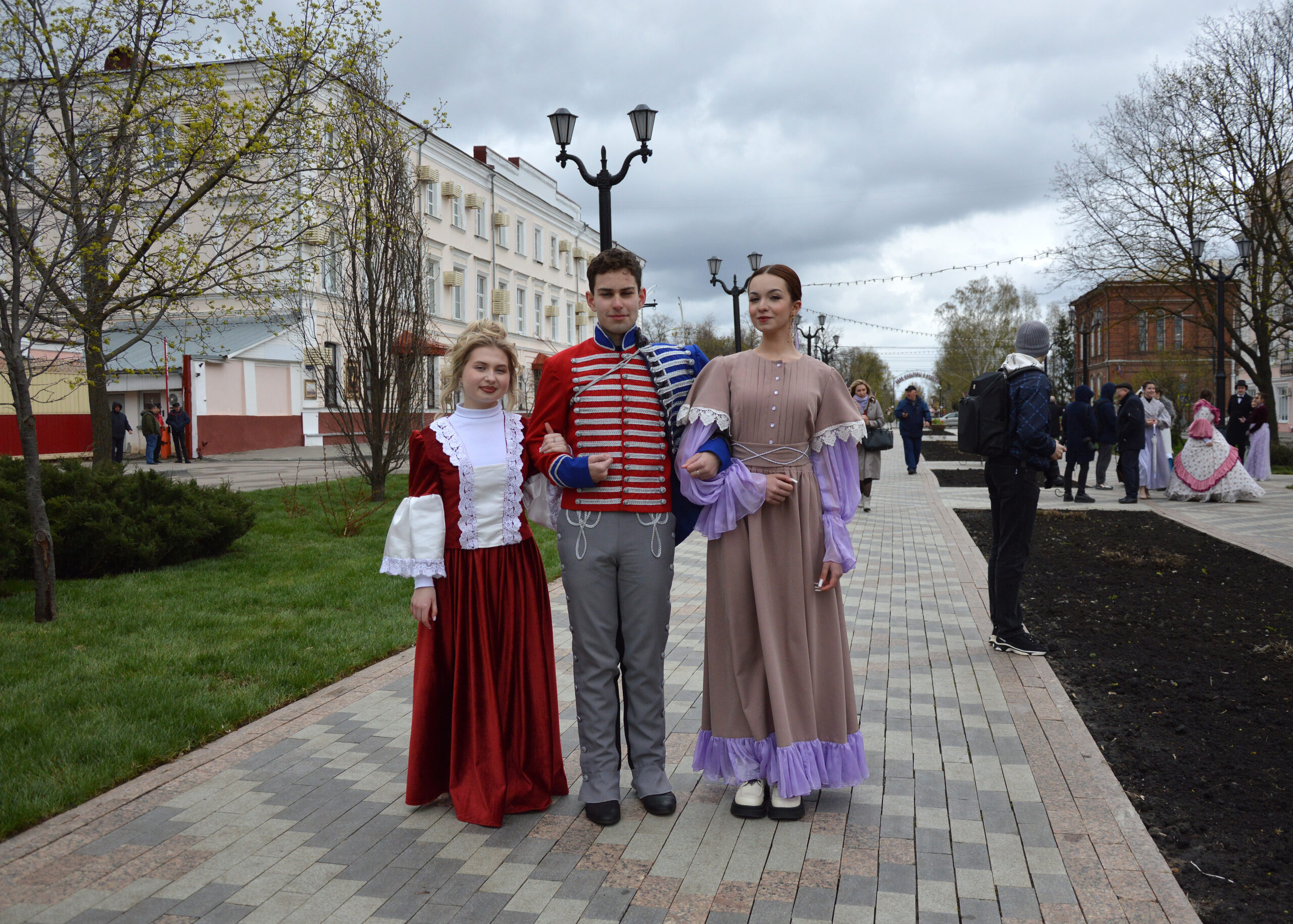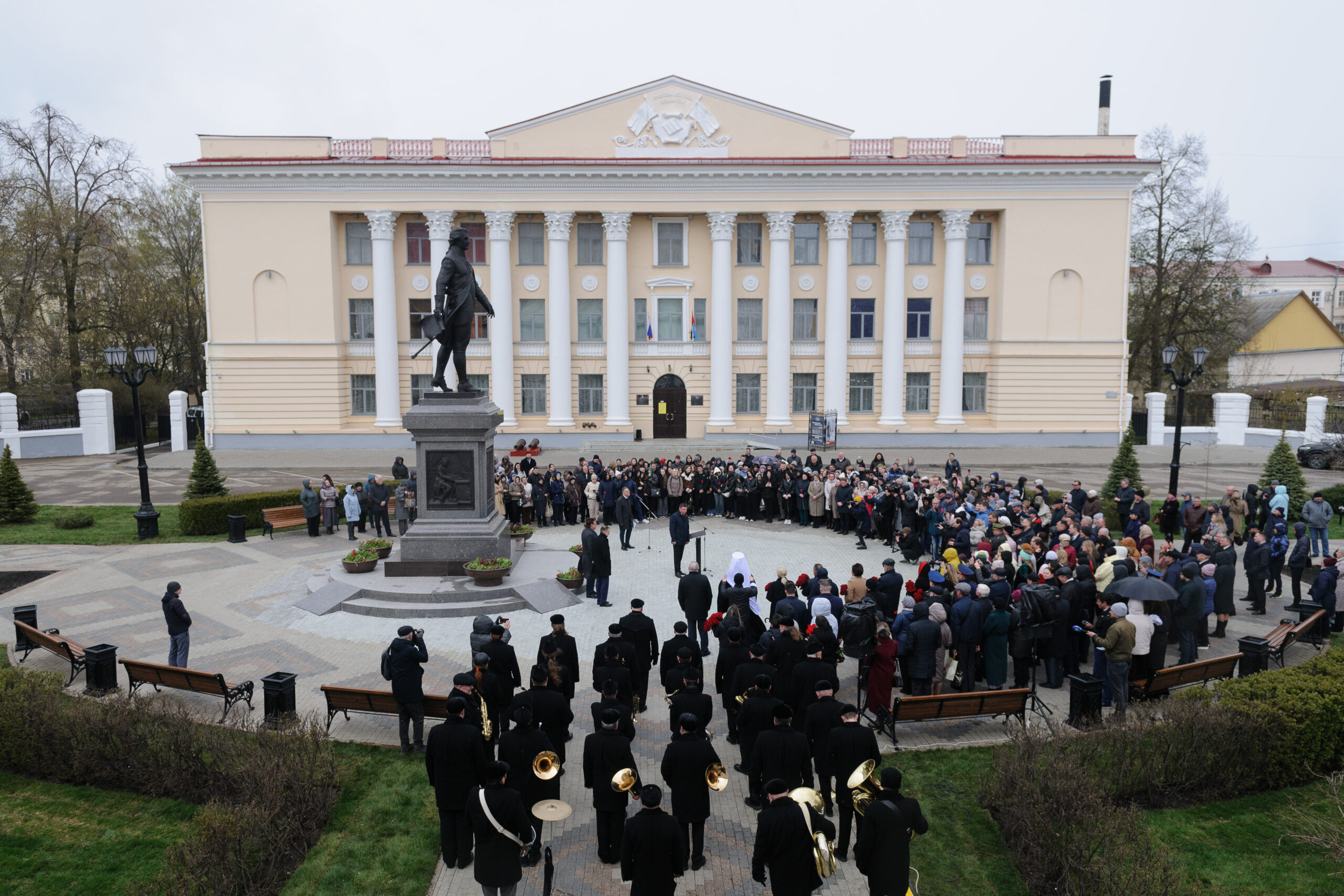 Участники торжественной церемонии открытия памятника Г.Р. Державину в одноименном сквере г. Тамбова. Общий вид. 27 апреля 2026 г. Автор съемки – А. Бучнев