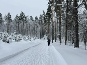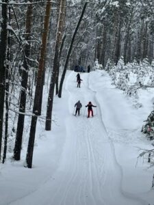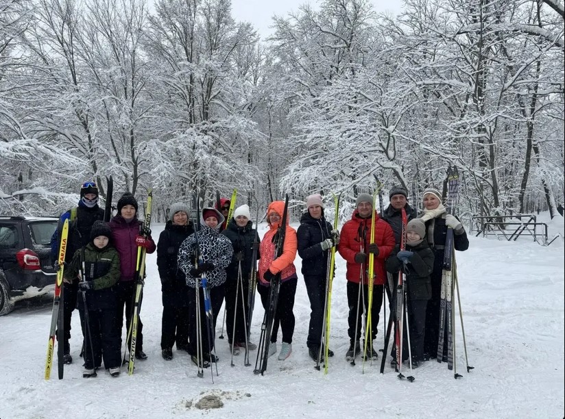 Заведующий отделом использования документов и информатизации, председатель первичной профсоюзной организации ГАСПИТО И.И. Муравьева на лыжной трассе в День профсоюзного семейного отдыха. 7 февраля 2026 г. Лыжная база «Перун»