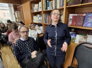 Отчетное собрание первичной профсоюзной организации ГАСПИТО. Выступает заведующий отделом комплектования и упорядочения документов О.Н. Каниковская. 19 февраля 2026 г. г. Тамбов, ул. Интернациональная, 35 (читальный зал ГАСПИТО)