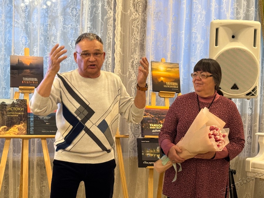 21 марта 2025 г. в Белом зале Историко-культурного музейного комплекса «Усадьба Асеевых» состоялась презентация фотоальбома «Тамбов озаренный» тамбовского фотохудожника, победителя областных фотоконкурсов, дипломанта II Международного фестиваля искусств С.Ю. Рудакова, ставшая, по сути, творческим вечером автора.