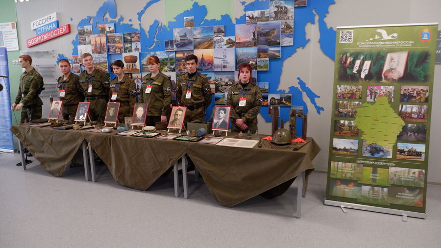 Перед началом торжества представители Тамбовского регионального отделения Общероссийского общественного движения «Поисковое движение России» презентовали выставку, посвященную результатам поисково-исследовательской деятельности. Участники мероприятия смогли ознакомиться с артефактами, найденными в ходе полевых поисковых работ, и установленными именами и судьбами солдат, погибших при защите Отечества. Выставка организована в рамках цикла мероприятий «Нам в наследство оставлена память» проекта фонда президентских грантов «По дорогам войны – по дорогам памяти».