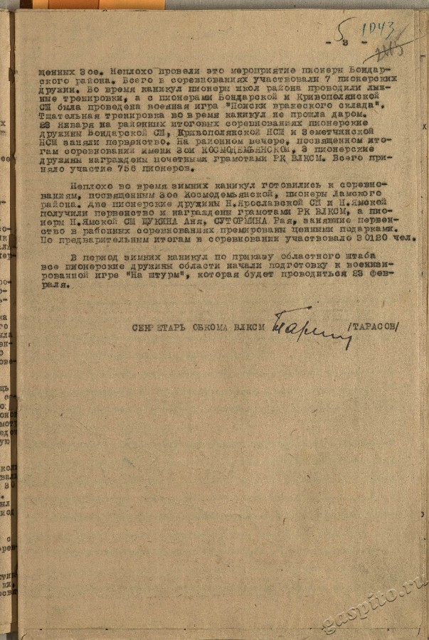 Представляем Вашему вниманию информацию об организации новогодних праздников и зимних каникул для школьников Тамбовской области в 1945 г.