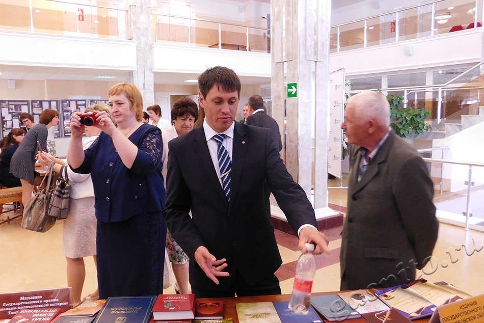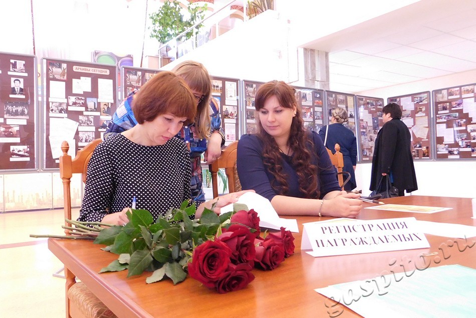 Благодарю вас за участие в организации и проведении торжественного мероприятия, посвященного 100-летию государственной архивной службы России. Спасибо всем, кто готовил и размещал фотодокументальную и книжную выставки, разрабатывал макет и осуществлял доставку приглашений, готовил видеоряд, составлял списки приглашенных, встречал, регистрировал, рассаживал гостей, фотографировал, помогал вручать награды, покупал цветы и делал многое другое, не заметное глазу постороннего, кто был все время рядом и помогал. Желаю, чтобы вместе мы встретили еще ни один юбилей нашего архива и архивной отрасли в целом.