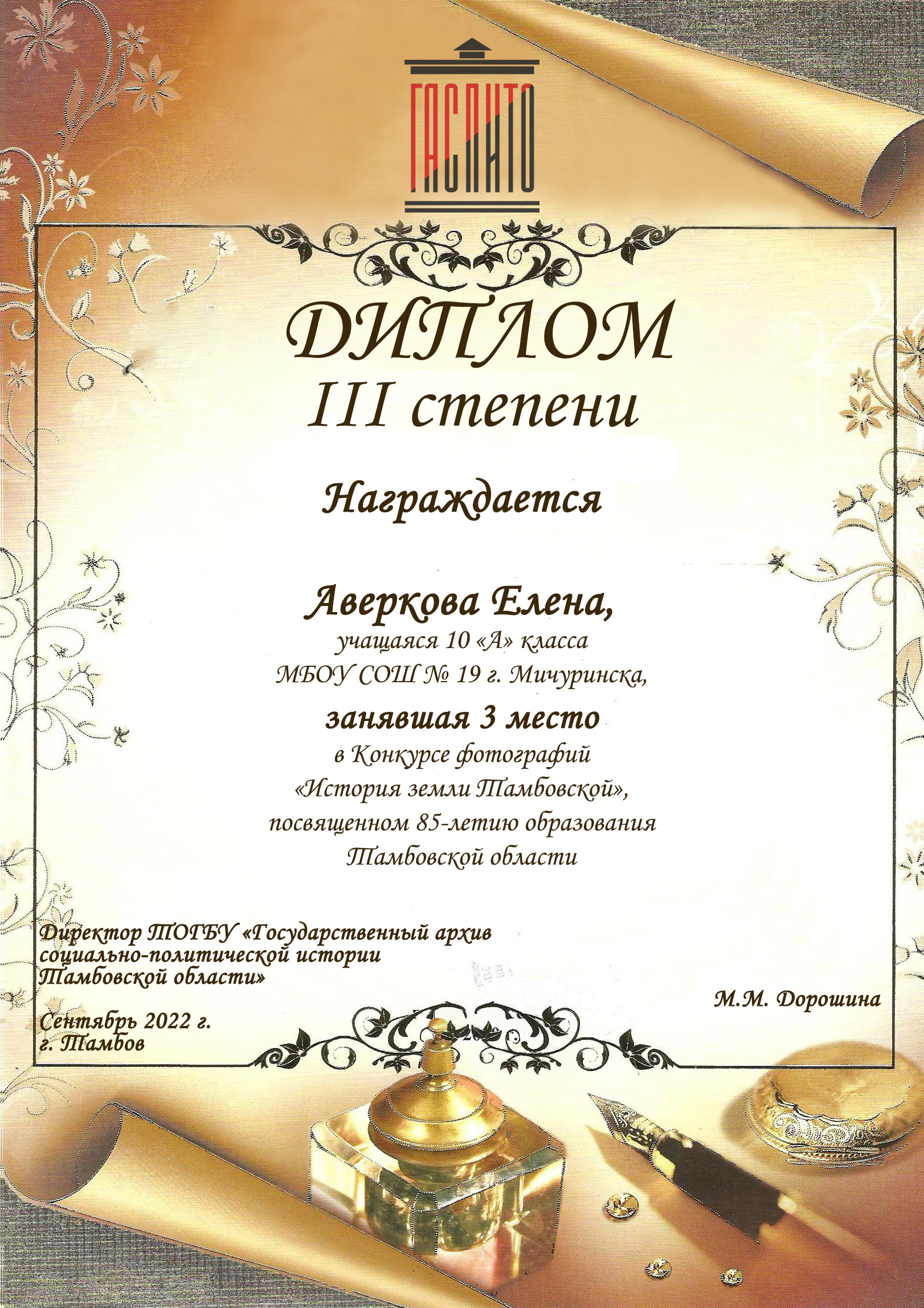 Подведены итоги конкурса фотографий «История земли Тамбовской», посвященного 85-летию образования Тамбовской области.