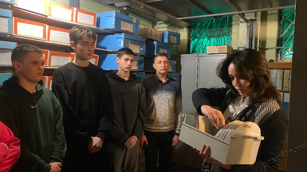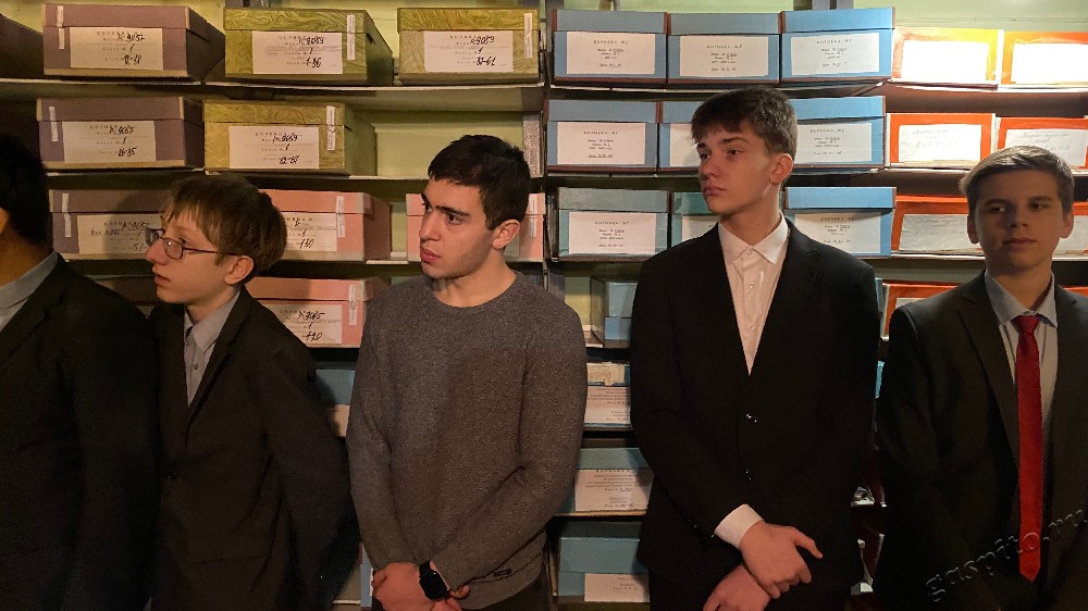 Главный хранитель фондов, заведующий отделом обеспечения сохранности и учета документов М.А. Свешникова провела экскурсию по архивохранилищу, где учащиеся узнали об основных требованиях к оборудованию и функционированию хранилищ, учету и хранению документов.