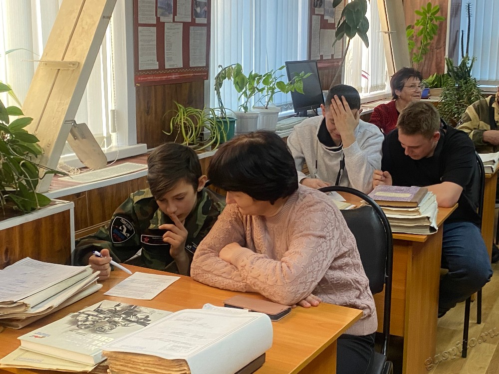 Старший научный сотрудник С.В. Вавилова познакомила ребят с документами ГАСПИТО, используемыми в поисково-исследовательской работе по установлению судеб защитников нашей Родины – участников Великой Отечественной войны. На практических занятиях поисковики познакомились с описями дел постоянного хранения фондов архива и отдельными делами военного времени, включая списки мобилизованных в РККА коммунистов и комсомольцев, заявления о добровольном уходе на фронт, учетно-партийными документами, личными делами участников войны.