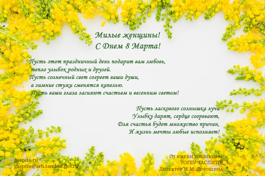 Поздравляем всех женщин – посетителей сайта ГАСПИТО с праздником 8 Марта!