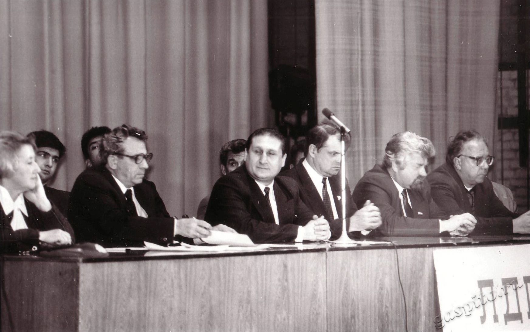 Описание: Встреча Владимира Вольфовича Жириновского, председателя Либерально-демократической партии России (ЛДПР), депутата Государственной Думы Федерального Собрания Российской Федерации, с тамбовчанами. Слева направо: первая — Ронэя Степановна Мялкина, координатор Тамбовской областной организации Либерально-демократической партии России (ЛДПР); второй — Виктор Иванович Глебов, руководитель центрального аппарата Либерально-демократической партии России (ЛДПР); пятый — Вячеслав Аркадьевич Чубарев, председатель Тамбовского областного регионального отделения Партии экономической свободы (ТОРО ПЭС); шестой — Сергей Козырев, депутат Государственной Думы Федерального Собрания Российской Федерации.