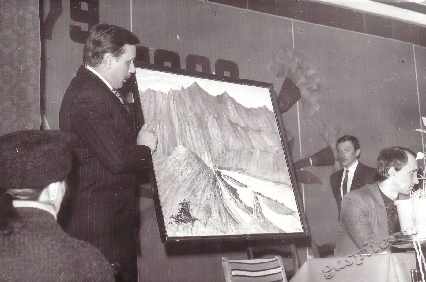 Описание: Собрание, посвященное памяти воинов, погибших в Афганистане. Выступление Александр Филиппович Бобров, глава администрации Октябрьского района г.Тамбова, дарит картину школе № 34 на собрании, посвященном памяти воинам, погибшим в Афганистане.