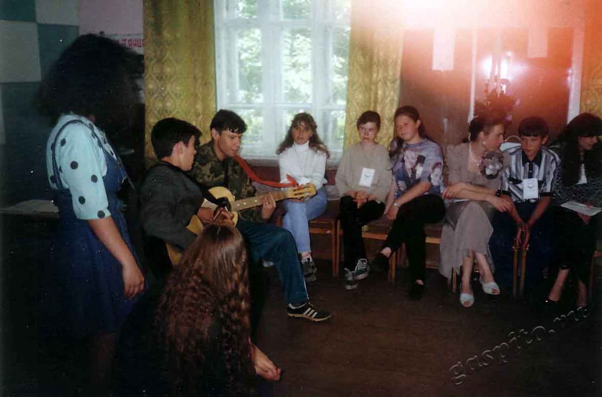 Описание: Фотодокументы Тамбовской ассоциации учащейся молодежи Тамбовского Союза Молодежи (ТАУМ ТСМ). Роман Попов (слева), Александр Богатырев ведут занятия музыкального центра на семинаре «Лидер-4» Ржаксинской ассоциации учащейся молодежи ТСМ.