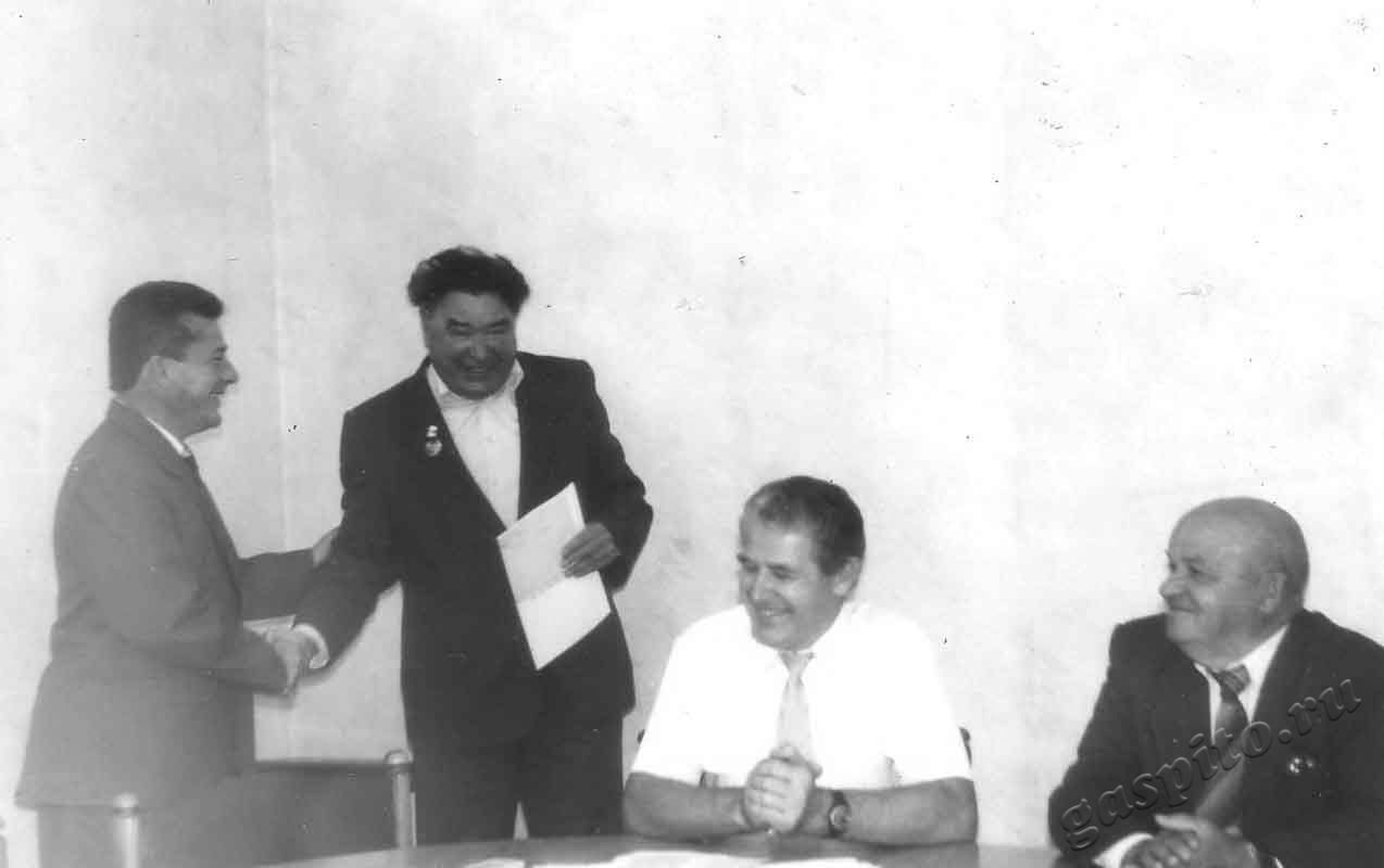 Описание: Фотодокументы Тамбовской областной организации пенсионеров-ветеранов, инвалидов войны, труда, Вооруженных Сил и правоохранительных органов. Юрий Николаевич Гуркин, заместитель главы администрации Тамбовской области, вручает грамоту Михаилу Дмитриевичу Черкасову, члену общественной комиссии администрации Тамбовской области по изданию областной Книги памяти. На награждении присутствуют слева направо: третий – Михаил Григорьевич Чичканов, заместитель начальника отдела государственной службы и кадровой работы администрации Тамбовской области; четвертый – Евгений Алексеевич Морозов, член общественной комиссии администрации Тамбовской области по изданию областной Книги памяти.
