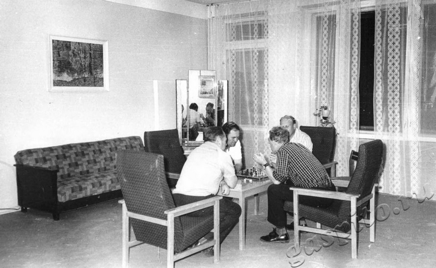Описание: Межколхозный санаторий «Инжавинский», расположенный в Инжавинском районе Тамбовской области. Участники шахматного турнира между отдыхающими.