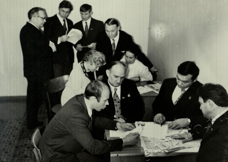Описание: Секретариат областной партийной конференции за работой.