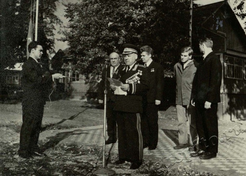Описание: Областной слет участников походов молодежи по местам славы советского народа. 18-20 сентября 1970 г. Председатель областного штаба походов генерал в отставке Панин И.В. открывает слёт.