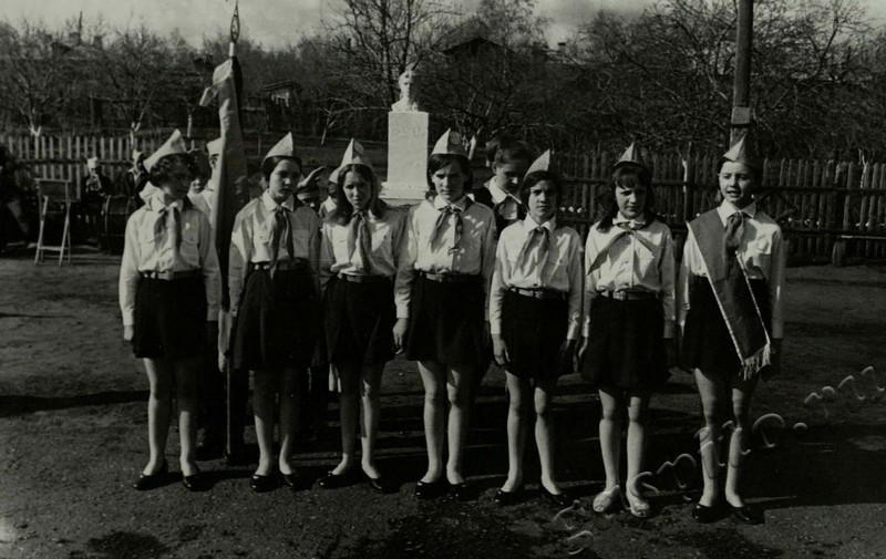 Описание: Пионеры приветствуют юных ленинцев и вновь вступивших комсомольцев. 20 апреля 1973 г.