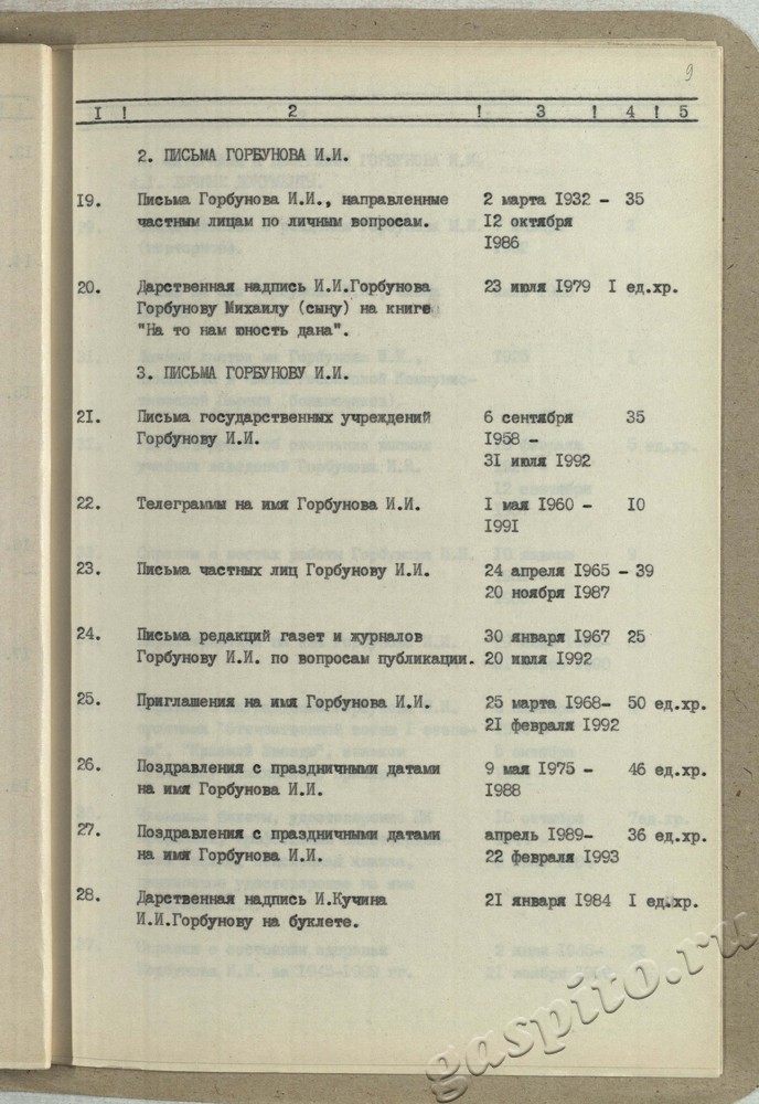 Опись №1 Автор записи:И.И. Муравьева Рубрика записи:Ф.Р-9311 Горбунов Иван Иванович (1904-1993) Запись опубликована:01.10.2019 Вам также может понравиться Опись №2 01.10.2019