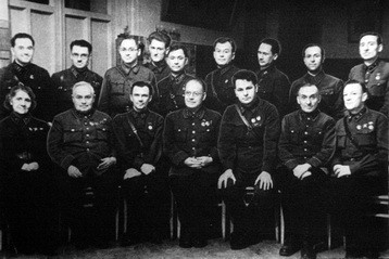 Слева направо: В.В. Гориневская, С.С. Гирголав, С.А. Семека, Н.Н. Бурденко, В.С. Левит, М.Н. Ахутин и др.