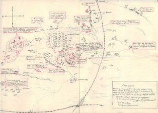 К рассвету мы вышли на р. Россошку, штаб дивизии сначала расположился в деревне, а затем перешел на высоту, что восточнее реки метров 800-1000, за двумя ветряными мельницами. Наши роты расположились на скатах высоты фронта к реке, как бы составляли 2-ю линию обороны, одновременно охрану штаба дивизии (КП).